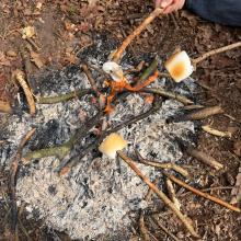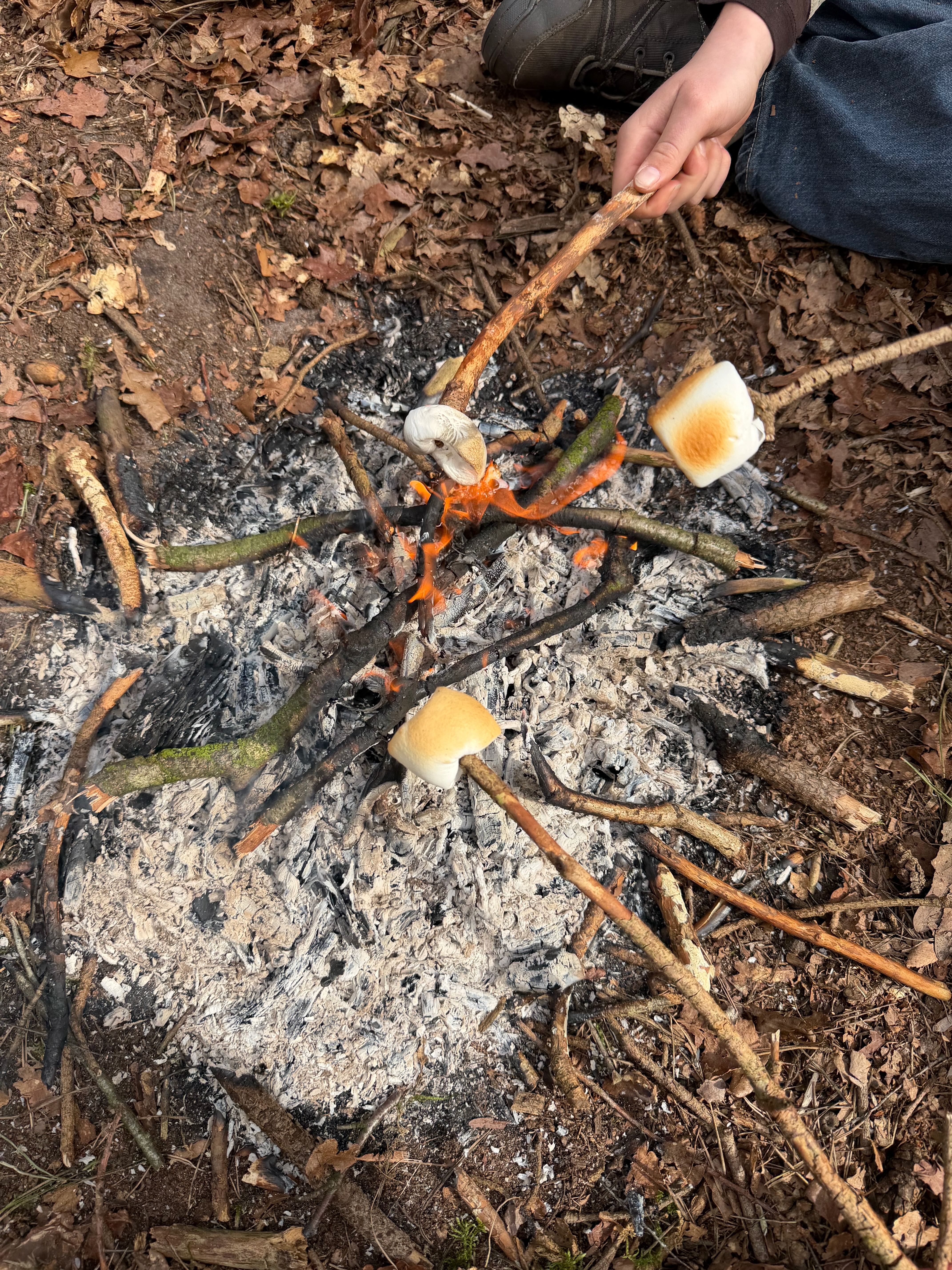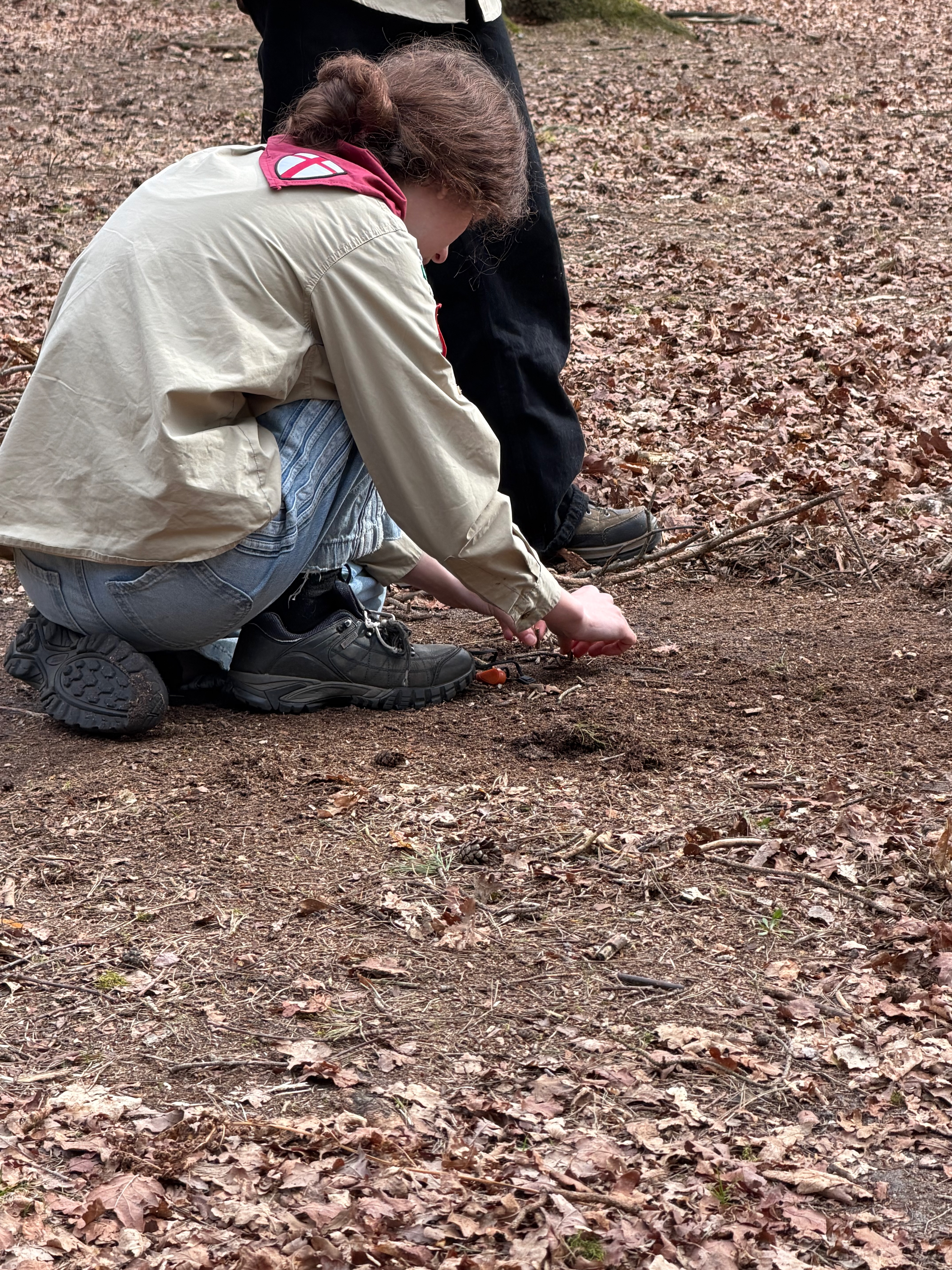Vervolgens splitsten de patrouilles zich op en ging 1 deel zich bezig houden met de vallen en strikken en het tweede deel ging zich bezig houden met de theorie en techniek van de vuurboog. Helaas bleek dit toch net iets te veel tijd te vergen en omdat er toch graag marshmellow gemaakt moesten worden werdt er over gegaan op tondel en een firesteel. Daarmee bleek snel een vuurtje gemaakt te worden en ging de scouts lekker marshmellows maken en eten.